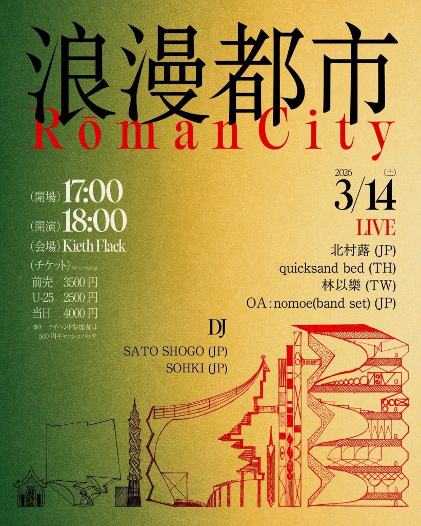 アジアの音楽シーンを繋ぐプロジェクト『浪漫都市 𝑅𝑜̄𝑚𝑎𝑛 𝐶𝑖𝑡𝑦』が始動。第1弾イベントが3月14日(土)に福岡Kieth Flackにて開催。